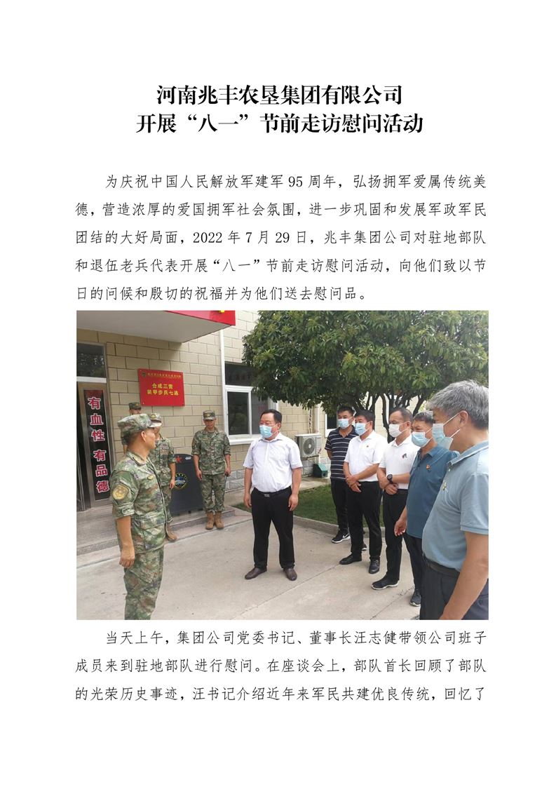 · 河南兆豐農(nóng)墾集團有限公司 開展“八一”節(jié)前走訪慰問活動